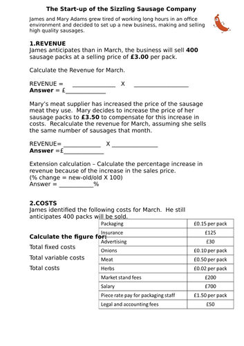 C to find the break even quantity we can either set revenue. Complete the following questions to investigate different types of linear models. Hopefully this makes some intuitive sense as well. The worksheet has brief case study and key financial information students then must calculate sales revenue variable costs total costs and finally whether the business has made a.