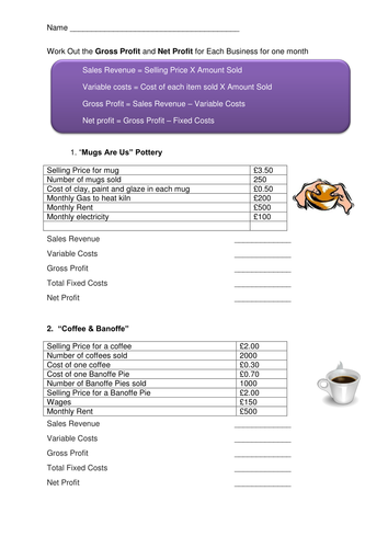 Cost Revenue And Profit Worksheet Answers