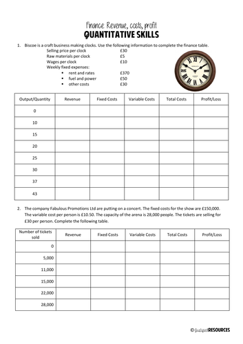 Cost revenue and profit worksheet answers. If the cost per item is fixed it is equal to the cost per item c times the number of items produced x or c x c x. A resource to give students practice at calculating revenue costs and profit. Questions microeconomics with answers 4 cost and revenue 01 total and marginal cost quantity q average cost 5 12 6 14 calculate. Find the revenue function.
