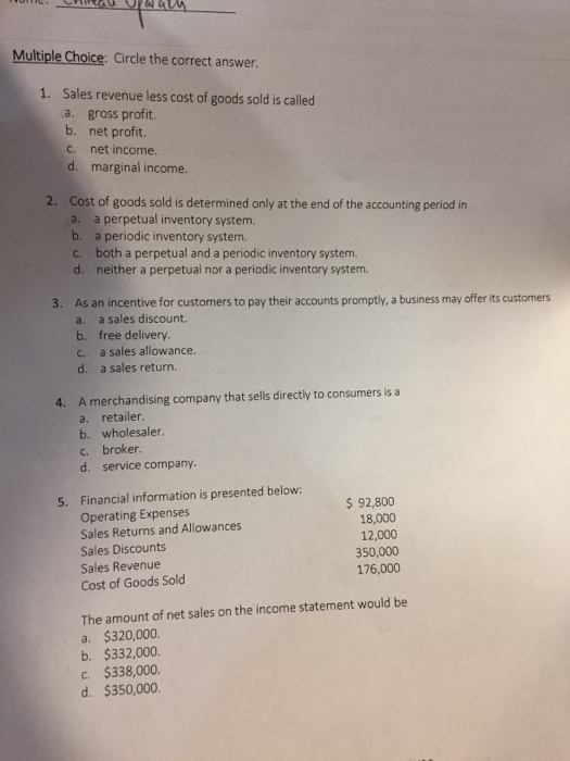 On An Income Statement Net Sales Revenue Minus Cost Of Goods Sold Is