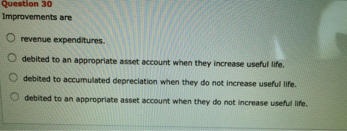 Capital expenditure it is the expenditure to create an asset that helps in generating future income and its life is more than. B debited to an appropriate asset account when they increase useful life. These expenditures are depreciated along with the assigned fixed asset. Asset accounts equity revenue.