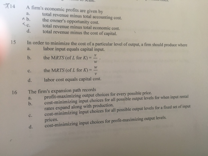 A firm s economic profits are given by total revenue minus total accounting cost. Economic profit measures the economic value added because it is calculated by subtracting both the explicit and implicit costs from. Profit is a firm s total revenue minus its total. In order to minimize the cost of a particular level of output a firm should produce where labor input equals capital input.